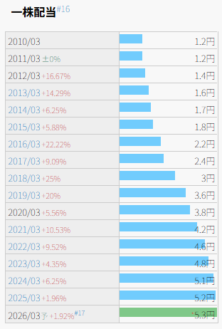 - 配当推移グラフ → 右肩上がり