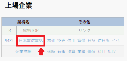 例:NTT → 証券コード9432